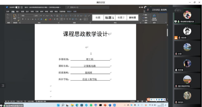 为深入贯彻落实习近平总书记关于“大思政课”的重要指示批示和在中国人民大学考察时的重要讲话精神,全面贯彻落实教育部《高等学校课程思政建设指导纲要》,深入落实《中共9499www威尼斯委员会关于“课程思政”建设的实施意见(试行)》,进一步加强课程思政建设,提升教师课程思政教学能力,坚持不懈用习近平新时代中国特色社会主义思想铸魂育人,软件工程教研室与党支部以“2022年课程思政教学竞赛”为契机,于2022年10月16晚,以在线视频会议的方式联合开展“党建+课程思政”建设活动,青年教师李闪闪、秦闻博进行了课程思政教学授课,软件工程教研室和党支部全体教师参加。