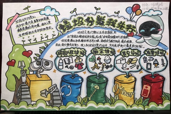 本次活动以“给垃圾一个分类的归宿”为主题,线上举行,从而增强同学们对垃圾分类的认识。活动宣传后,同学们积极踊跃的报名参加。活动进行期间,参赛选手们精心设计手抄报版面,创作出了一幅幅内容丰富、形式多样的手抄报,呈现出来的作品色彩艳丽,构思独特,内容丰富,其中包括介绍垃圾的种类、讲解垃圾如何分类、宣传垃圾分类的好处等专栏,体现了我院大学生拥有非常丰富的垃圾分类知识以及强烈的资源意识。最终经过层层筛选和评委打分,评选出一、二、三等奖,活动圆满结束。