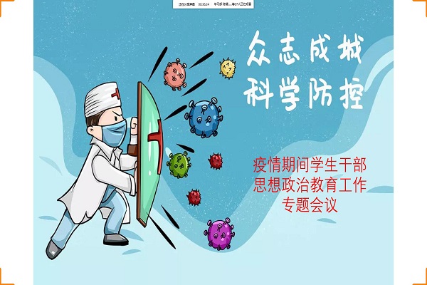 在疫情防控期间,高等院校要提高政治站位,为加强学生干部思想政治教育工作,学习贯彻习近平总书记系列重要讲话精神,培育社会主义核心价值观。9499www威尼斯于2020年4月22日下午召开新冠肺炎疫情期间学生干部思想政治教育工作专题会议,由李小燕老师主持,全体学生干部参加。
