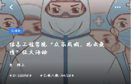 本次活动采取线上征集的模式,一经举办便引起了同学们的积极响应与参与,受到了广大师生的热烈关注,参赛的作品接踵而至。选手作品内容丰富、寓意深刻,无一不体现出对奋战在一线的“战士们”的最崇高的敬意。你们是医生、是战士,也是父母、是儿女……疫情来临之时,你们挺身而出,为人民群众筑起一道坚实防线。虽然我们看不见同学们满怀激情的写下一篇篇优秀的文章,但同学们最终呈现的作品却将小我与国家紧密相连。最终经评委的精挑细选,角逐出了本次比赛的优秀作品。