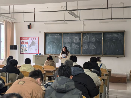 班会上,陈宁宁强调了期末考试的重要性,要求同学们制定科学复习计划,合理安排时间,提高学习效率,以饱满的精神状态迎接考试。随后,通过讲解考试作弊案例及学校相关处罚规定,深入阐释了诚信考试的意义,让同学们深刻认识到考试作弊不仅违反校规校纪,更是对学术道德的严重破坏,会给个人学业和未来发展带来极大负面影响。